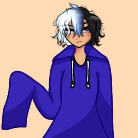 Hair colour: white on the left, black on the right with a blue/grey gradient