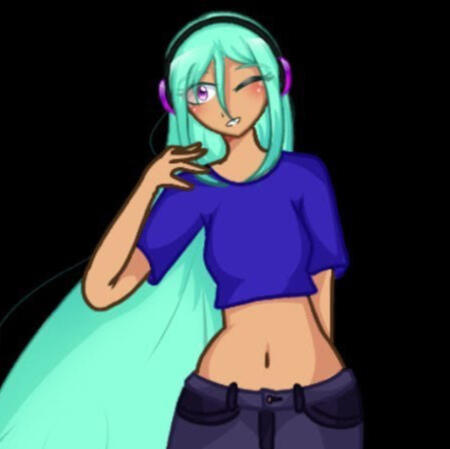 Main attribute/accessory: headphones (black w/ purple neon highlights/decor)
